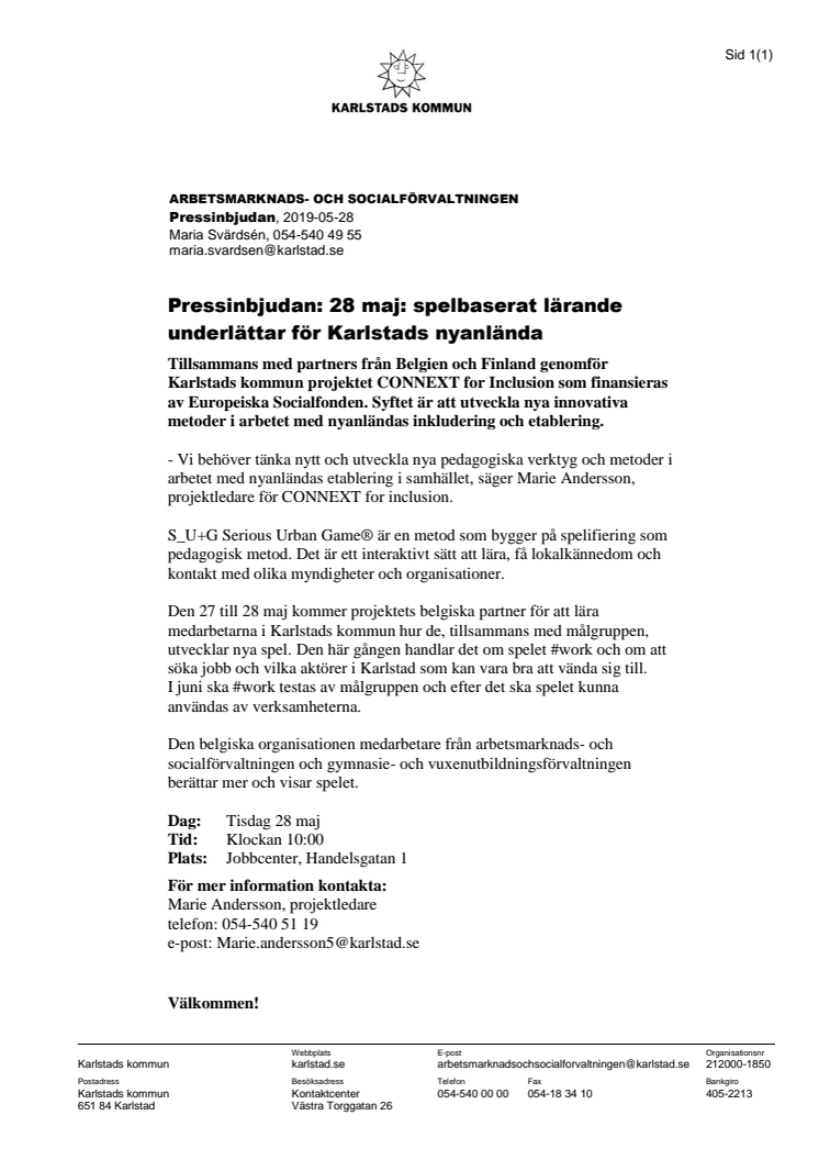Pressinbjudan: 28 maj: spelbaserat lärande underlättar för Karlstads nyanlända