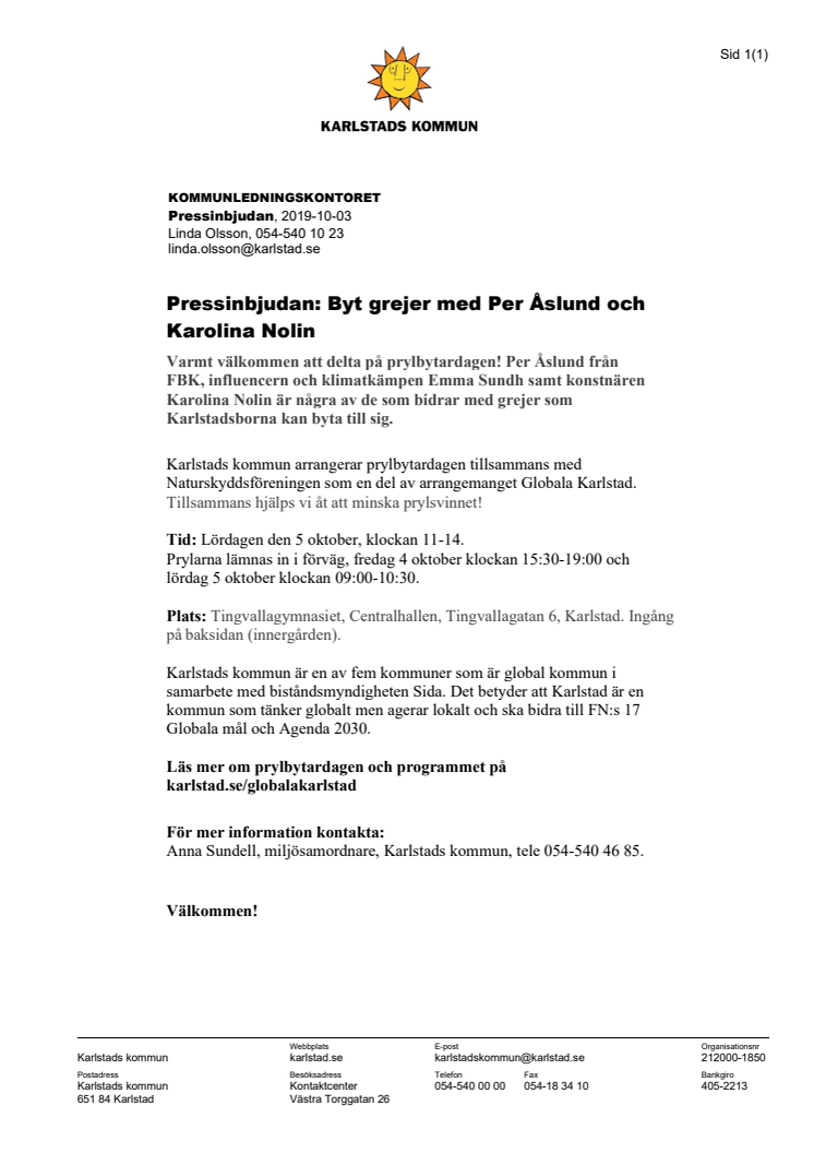 Pressinbjudan: Byt grejer med Per Åslund och Karolina Nolin