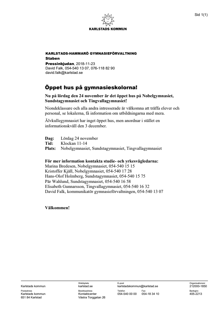Pressinbjudan - Öppet hus på gymnasieskolorna