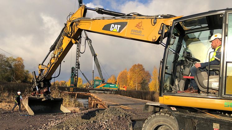 Kommunen sanerar och gräver bort en del förorenade massor där bron ska gå på den västra sidan. Inför byggnationen upptäcktes föroreningar i marken som kommunen nu schaktar bort. När det är gjort kan bron börja ta form.